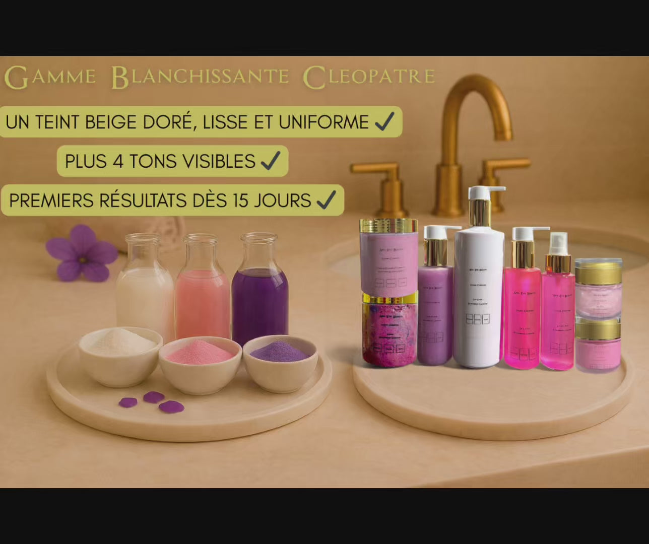 Découvrez l’excellence de la Gamme Blanchissante Cléopatre à travers ce coffret de 8 produits conçus pour éclaircir votre teint de 4 tons.